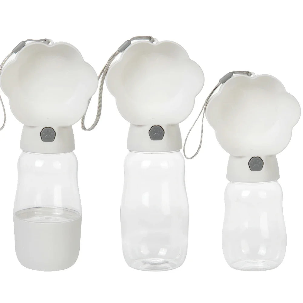 Keep your dog hydrated on the go with this 2-in-1 travel water bottle. Features a paw-shaped bowl for easy drinking and feeding, suitable for small to large dogs and puppies. Perfect for walks, hikes, and outdoor adventures.